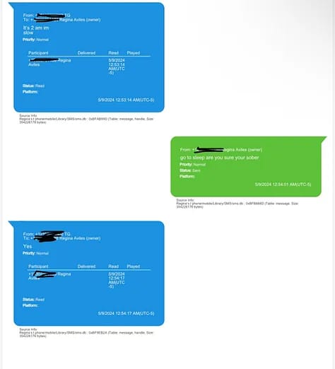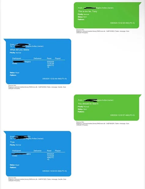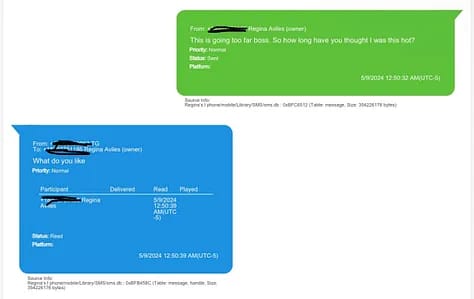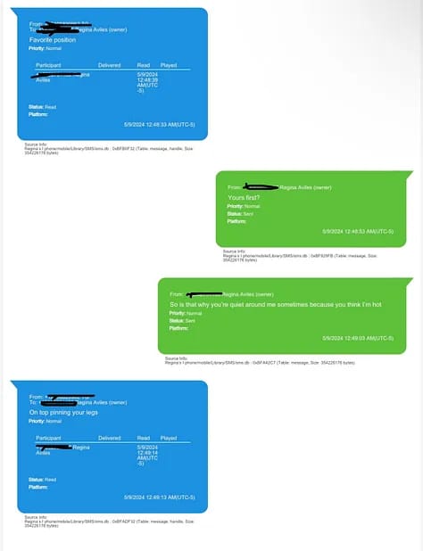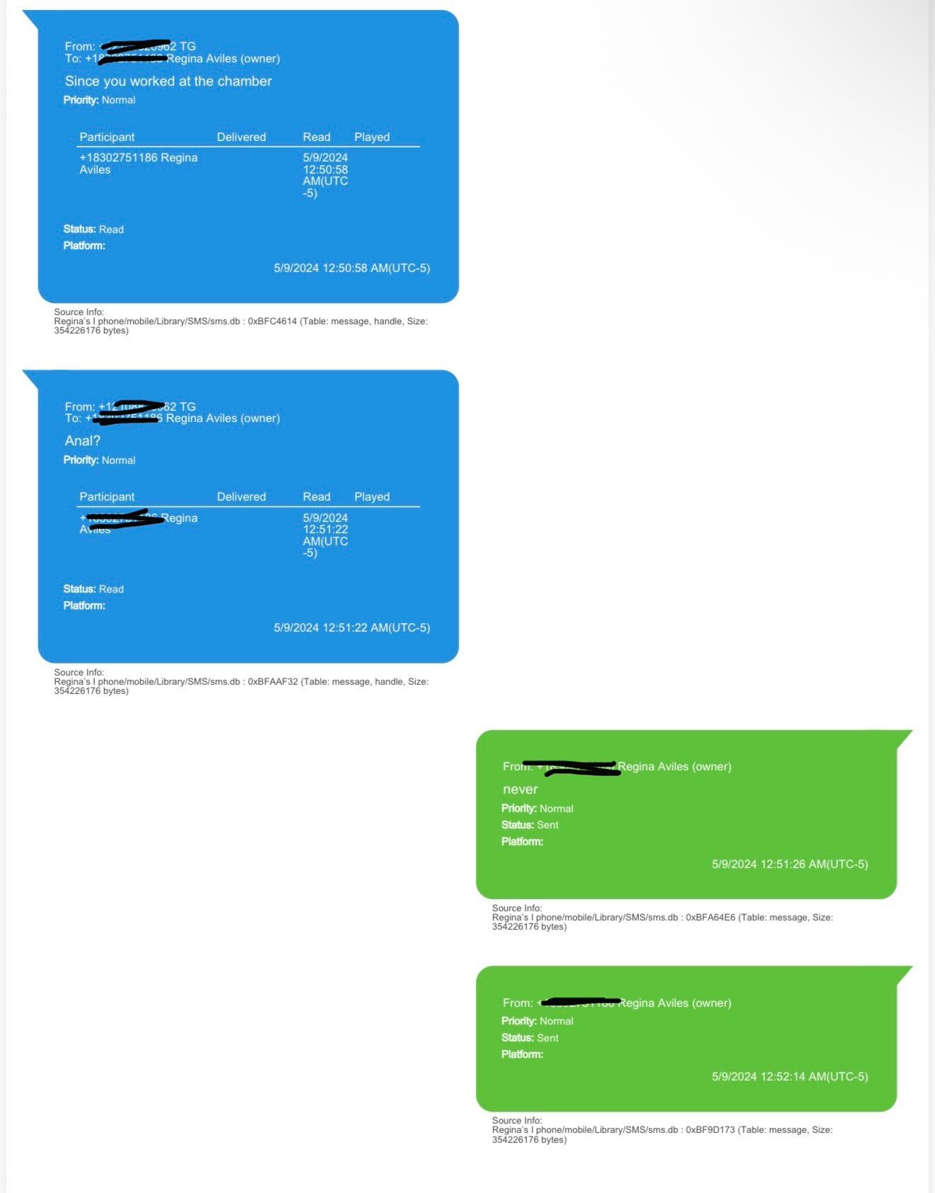 As the conversation continued, Gonzales asked about sexual preferences and positions. The messages indicate Santos-Aviles repeatedly pushed back. “This is going too far, boss,” she wrote at 12:50 AM.